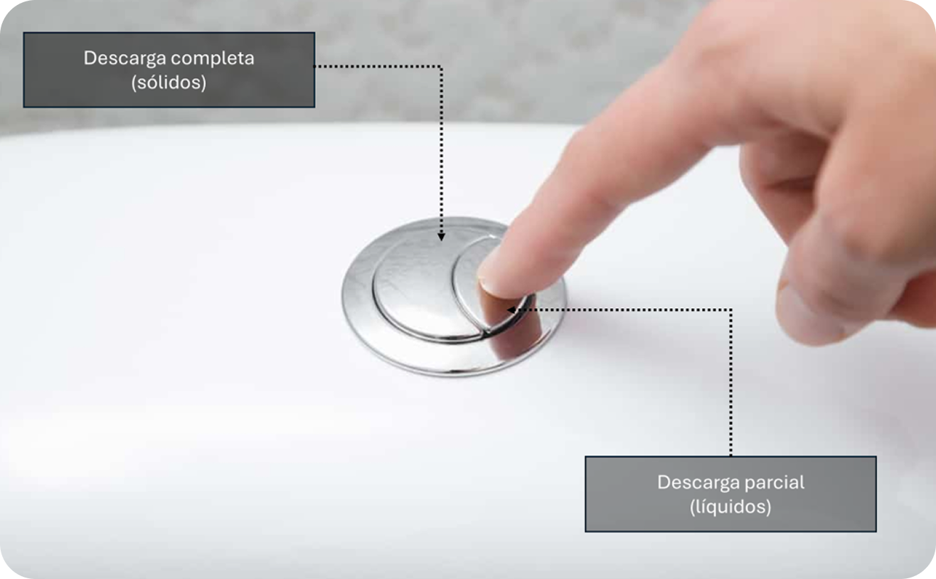 Los inodoros de doble descarga (dual flush) permiten dos descargas independientes para la eliminación de desechos.