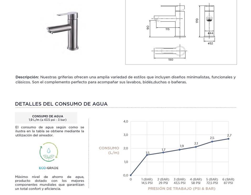 El caudal es la cantidad de fluido que circula a través de una sección por unidad de tiempo. Asegúrate que tus artefactos no sobrepasen la línea base para el caudal máximo recomendado para artefactos sanitarios.