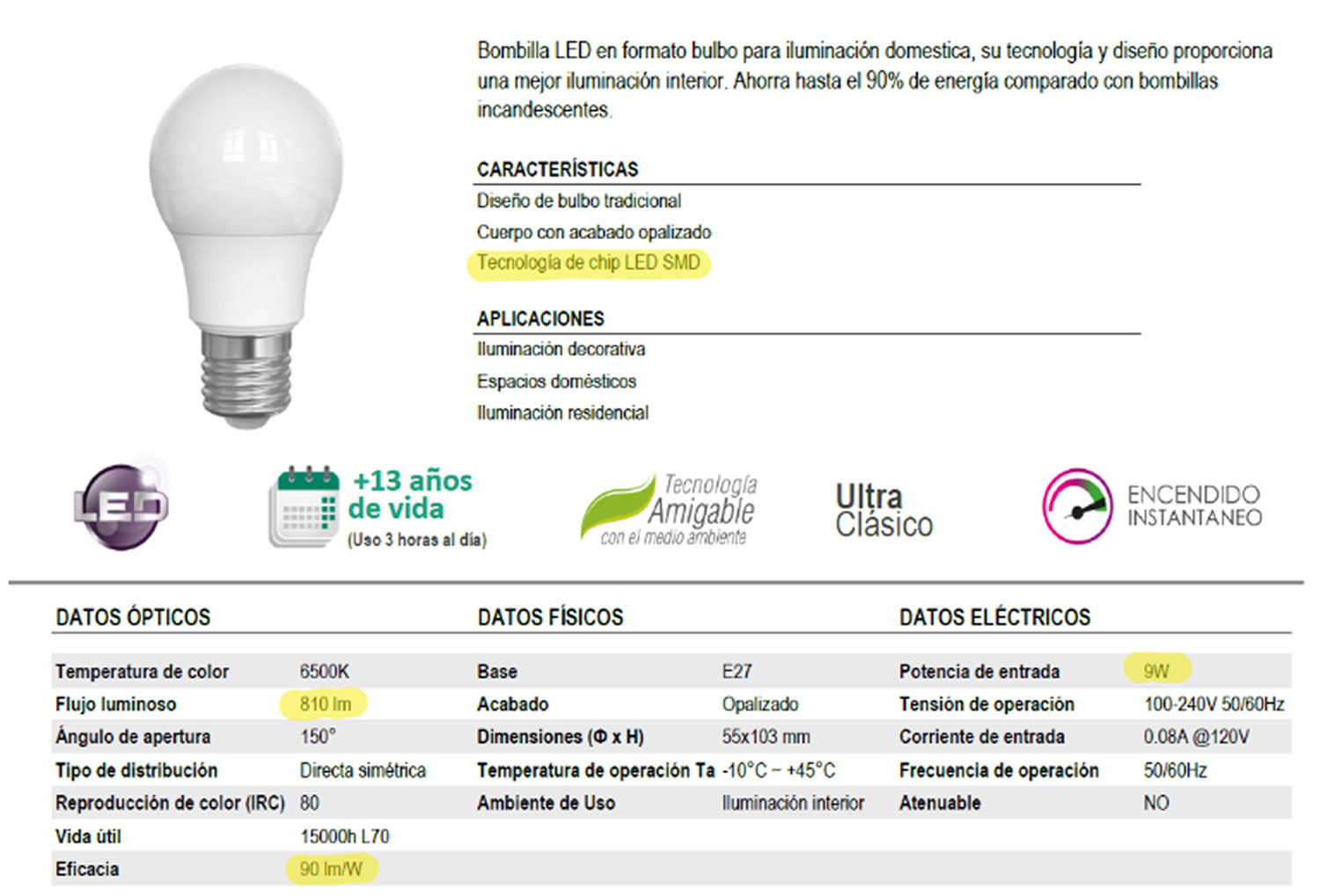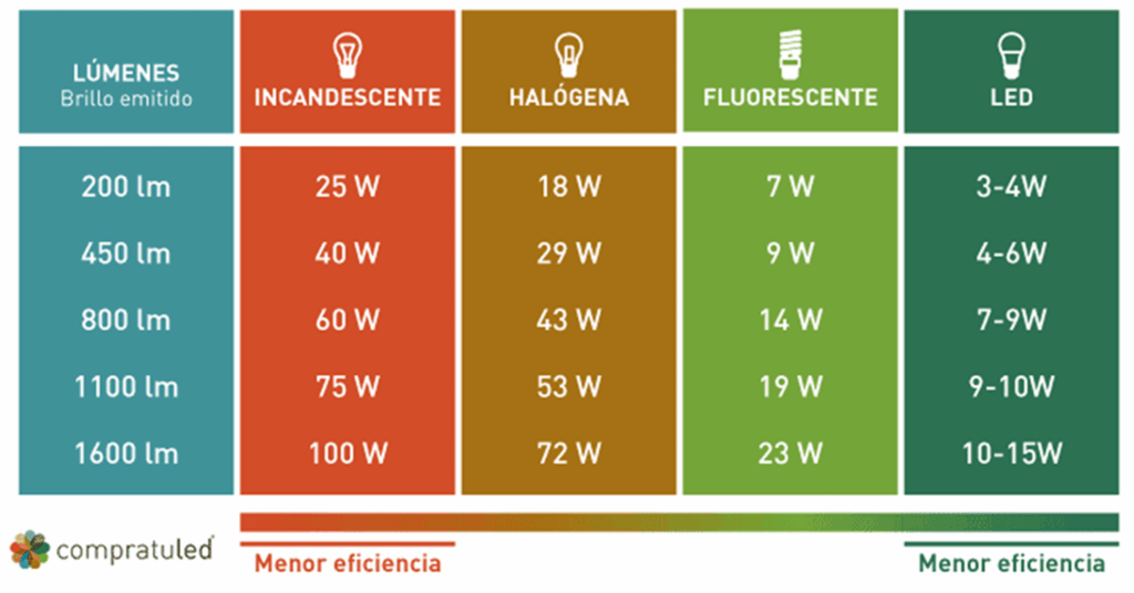 Mientras más alta la relación entre lúmenes/watt, más eficiente las luminarias. Busca luminarias que tengan una relación superior a 90 lm/w.