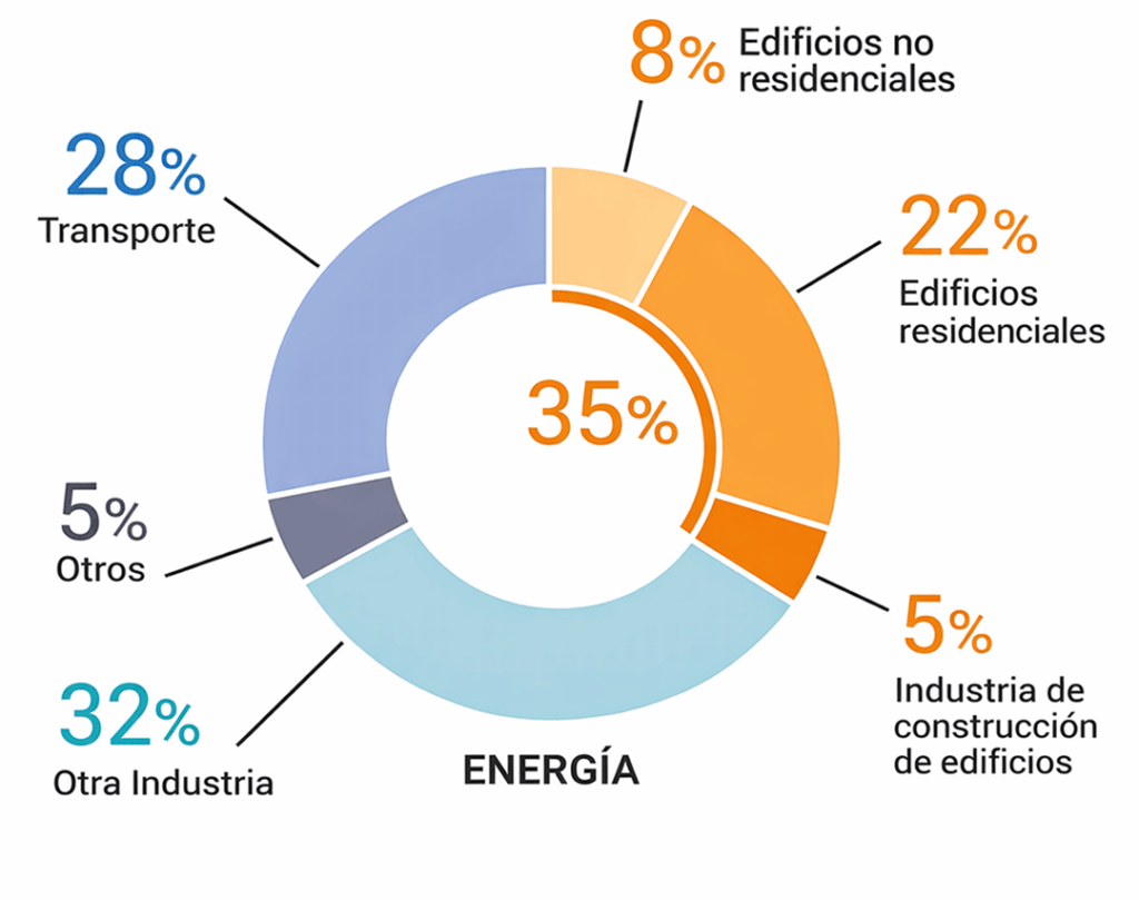 Según datos de la Alianza Global para Edificios y Construcción (Global ABC), el sector residencial representa alrededor del 22% del consumo energético en comparación a otros sectores económicos a nivel mundial, y la operación de las edificaciones representan un 35%, superando a otros sectores como el transporte y la industria.