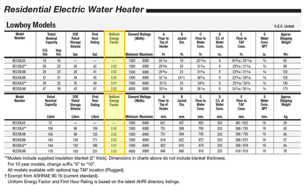 Se recomienda elegir calentadores de agua con un factor uniforme de eficiencia (UEF) superior a 90, o más de 90% de eficiencia térmica.