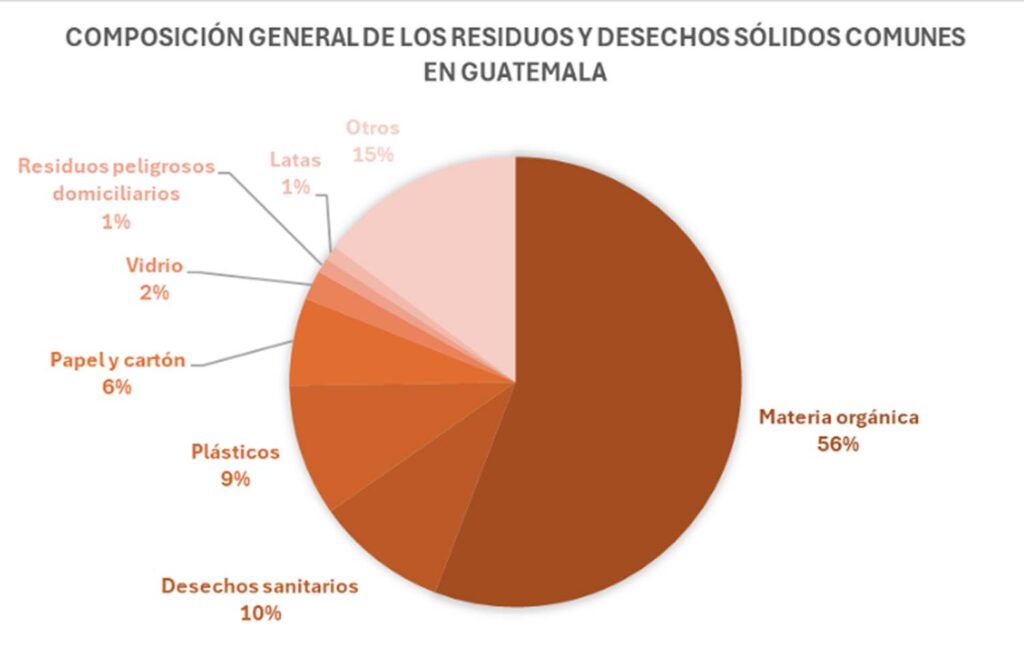 Se estima que en Guatemala la generación per cápita de residuos y desechos sólidos comunes es de 0.519 kilogramos por habitante al día.
